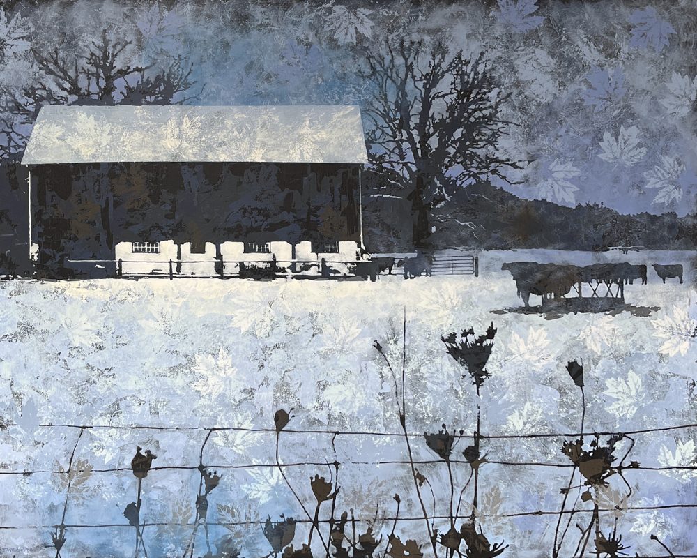 “Winter Farm”, 48×60 inches, acrylic on panel